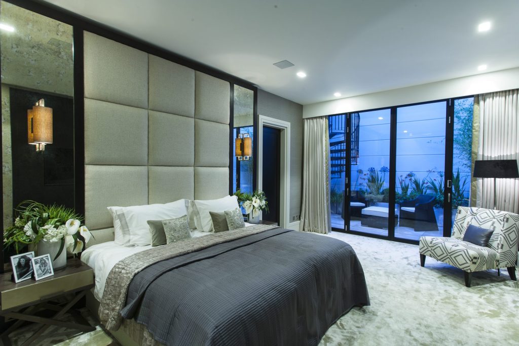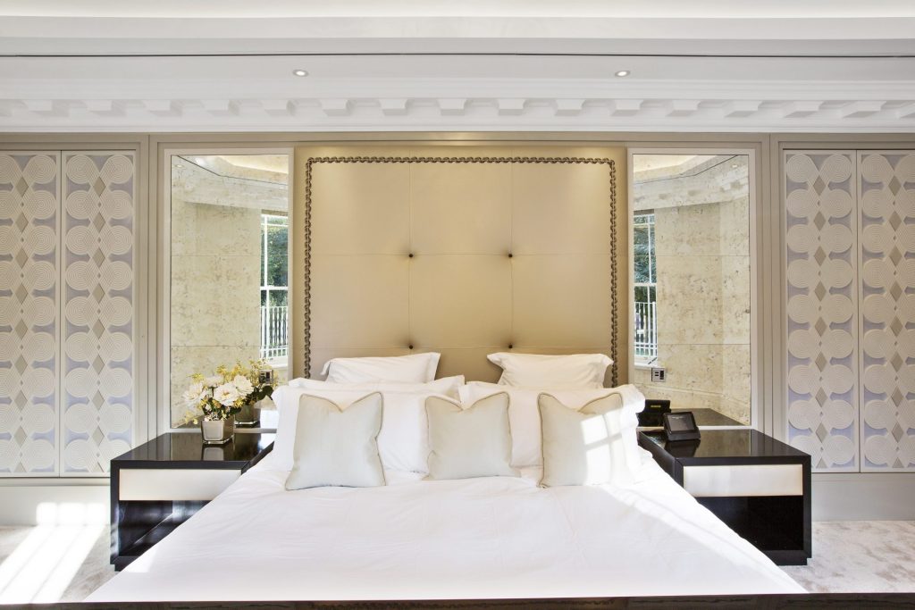 Opt for a super king or king-size bed with a high-quality upholstered or tufted headboard.